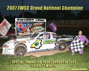 Racer #4 Brett Wenzel, EWSC, H.P. by MMM&P Inc., Track record holder, feature win and grand national champion, 2007 race season.